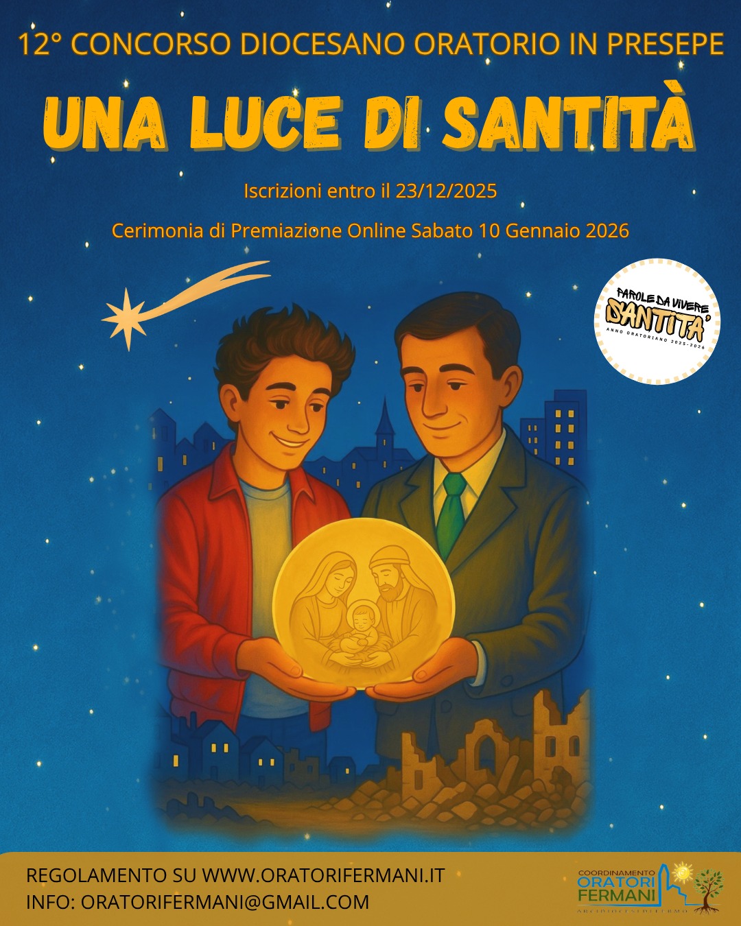 “Un grazie all’oratorio per averci riproposto, nell’Angelo che illumina dei sette colori dell’arcobaleno il mondo intero, l’antica immagine biblica dell’arco posto sopra le nubi, segno dell’eterna alleanza di pace che Dio ha stabilito da sempre con l’umanità e che ha rinnovato nel presepe. Ci uniamo a loro nel diffondere la consapevolezza che è a partire da quell’alleanza di pace che Dio ha con noi che noi possiamo a nostra volta creare alleanze di vera pace tra noi.”